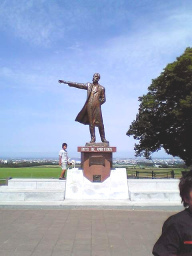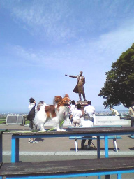 有名なクラーク博士のブロンズ像。 おーいポポ!向きが反対だよ〜〜。 |