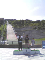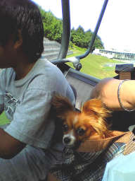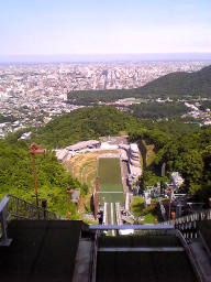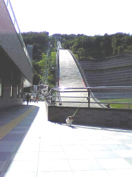 | 大倉山ジャンプ競技場へ。なんだか、メチャ高いぞ〜〜。 | リフトで、頂上へ。(ポポ!今降りちゃダメだからね) |